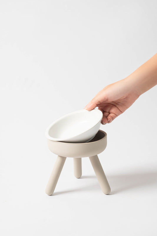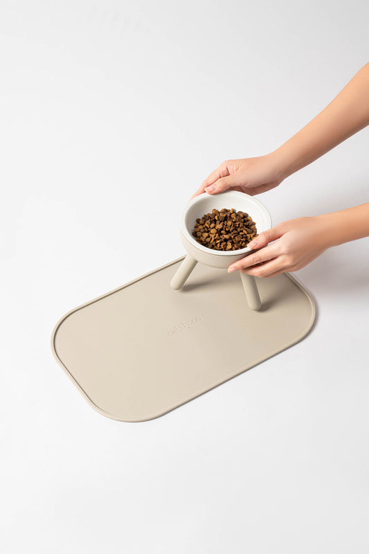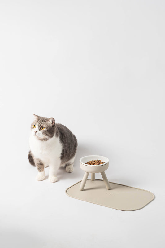 cat feeder table with gentle silicone mat and porcelain bowl set